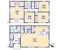 | 間取り | 3LDK 間取り内訳:リビングダイニングキッチン 18帖(1階)・和室 5.2畳(1階)・洋室 6.5帖(1階)・洋室 7帖(1階) |