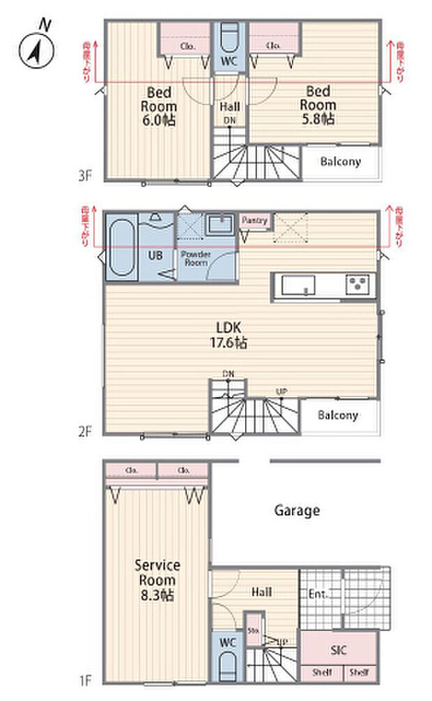 間取り 2LDK+S(納戸)~3LDK+S(納戸) 建物階 木造3階建