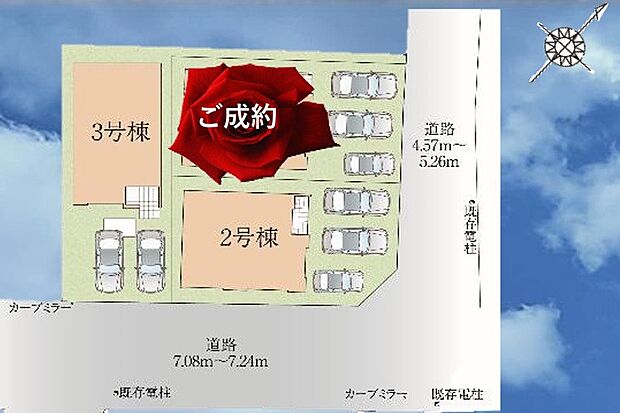 3号棟:南東7m /2号棟:南東7m 北東4.5m