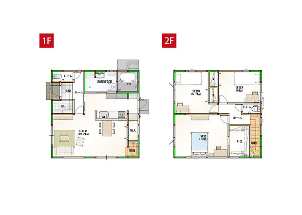 • 「建築条件付き土地」の「建物プラン例」は、土地購入者の設計プランの一例であり、プランの採用可否は任意です。