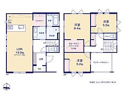| 間取り | 3SLDK 間取り内訳:リビングダイニングキッチン 17帖(1階)・洋室 7帖(2階)・洋室 5.2帖(2階)・洋室 4.7帖(2階)・収納 4.7帖(2階) |