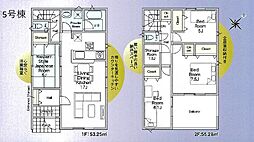 | 間取り | 4LDK(LDK 18.0畳) 間取り内訳:リビングダイニングキッチン 18帖(1階)・洋室 6帖(2階)・洋室 6帖(2階)・洋室 5.3帖(2階)・洋室 4.5帖(2階) |