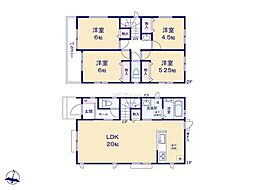 | 間取り | 3LDK 間取り内訳:リビングダイニングキッチン 20帖(1階)・洋室 8帖(2階)・洋室 5.2帖(2階)x2 |