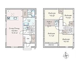 間取り内訳:リビングダイニングキッチン 19.6帖(1階)・洋室 4.9帖(2階)・洋室 5.1帖(2階)・洋室 6帖(2階)・洋室 6.8帖(2階)