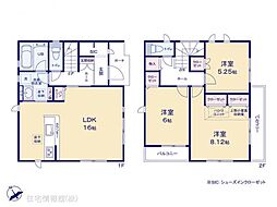 | 間取り | 3LDK 間取り内訳:リビングダイニングキッチン 16帖(1階)・洋室 8.1帖(2階)・洋室 6帖(2階)・洋室 5.2帖(2階) |