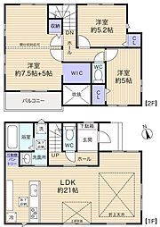 | 間取り | 4LDK 間取り内訳:リビングダイニングキッチン 16帖(1階)・洋室 5帖(1階)・洋室 7帖(2階)・洋室 6.5帖(2階)・洋室 5.2帖(2階) |