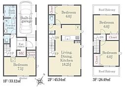 | 間取り | 3LDK 間取り内訳:洋室 6.5帖・洋室 5.2帖・洋室 5.5帖・リビングダイニングキッチン 18.2帖 |