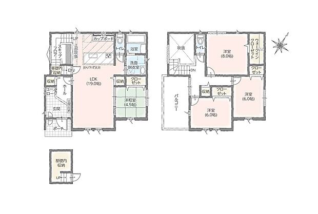 SIC・WIC・基礎内収納など豊富な収納で荷物が増えがちな子育て家族を応援 リビングで遊ぶお子さんを見守りながらテレワークもできる「スキップフロア」 家族と会話しながらお料理ができるペニンシュラタイプの対面式キッチン・食器洗い乾燥機などうれしい設備が充実!
