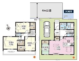 並列2台駐車可能なカースペース付き。4LDK・2階建ての新築戸建てです。