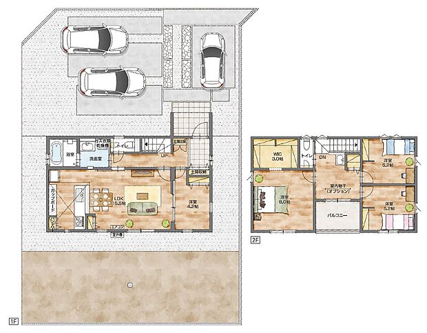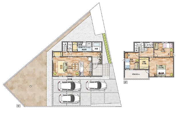 - 「建築条件付き土地」の「建物プラン例」は、土地購入者の設計プランの一例であり、プランの採用可否は任意です。