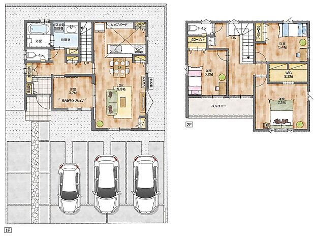 【全20区画の大型分譲地】子育て世帯にオススメ!小学校徒歩8分&ご近所さんともお引越し時期が近くて安心です。 【充実の設備・くらしをここちよく工夫を凝らしています】カップボード/食洗機/LDK照明/室内物干/浴室乾燥・暖房/大型収納/土間収納/ガス式衣類乾燥機/スマートキー/2階洗面/リビングエアコン 【住みやすく長持ちする家】構造計算実施/耐震等級3取得/ZEH基準断熱/最長60年保証/長期優良住宅認定