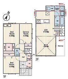 | 間取り | 4LDK 間取り内訳:リビングダイニングキッチン 18帖(1階)・和室 4.5畳(1階)・洋室 7帖(2階)・洋室 5.2帖(2階)x2 |