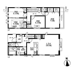 | 間取り | 3SLDK 間取り内訳:リビングダイニングキッチン 15.7帖(1階)・収納 3.9帖(1階)・洋室 6帖(2階)・洋室 4.7帖(2階)・洋室 5.4帖(2階) |