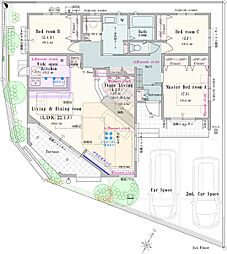 • 建物の内容は、土地購入者の自由意思により決定可能で、土地売買契約後、 建築請負会社と購入した土地に建設する建物について協議することになります。
