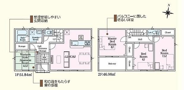 間取り内訳:リビングダイニングキッチン 16帖(1階)・和室 4.5畳(1階)・洋室 8帖(2階)・洋室 7.5帖(2階)・洋室 6帖(2階)