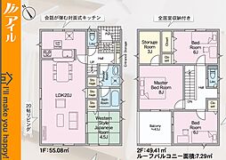 間取り内訳:リビングダイニングキッチン 20.5帖(1階)・洋室 6帖(2階)・洋室 4.5帖(2階)・洋室 4.5帖(2階)・洋室 7.5帖(2階)