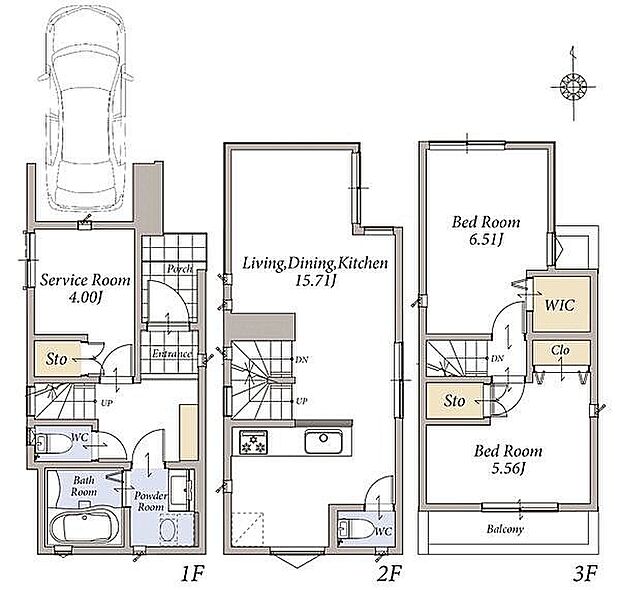 間取り 2LDK+S 建物階 木造、地上3階建て