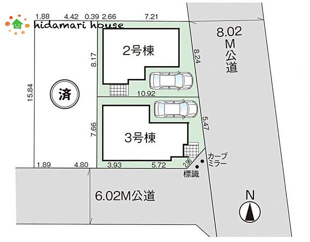 東8.02m公道(2・3号棟)、南5.98m公道(3号棟)