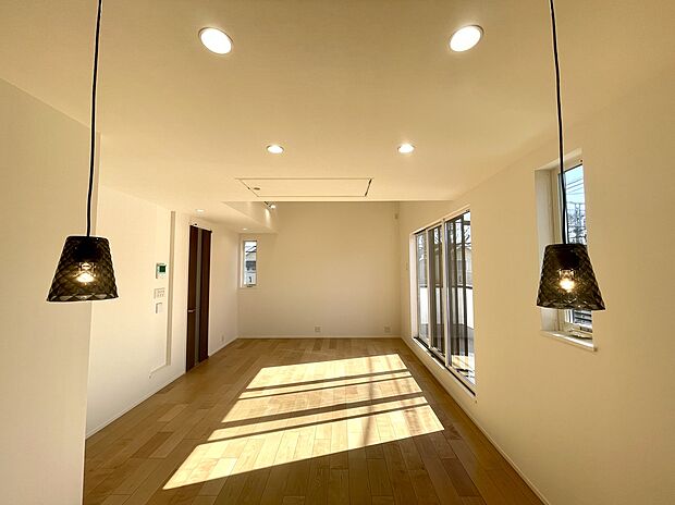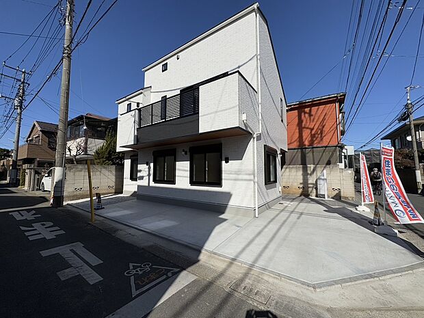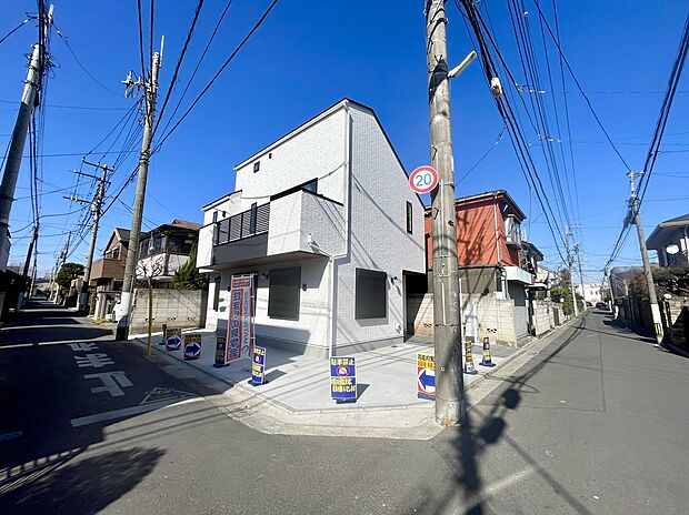 東南角地の新築戸建 LDK18帖 車2台駐車可能 ・耐震等級3 ・省令準耐火構造 ・食洗機、床暖房、宅配ボックス標準装備 ・全居室南側採光の明るい住まい