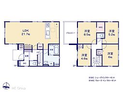 | 間取り | 4LDK 間取り内訳:リビングダイニングキッチン 21.7帖(1階)・洋室 8.5帖(2階)・洋室 6帖(2階)・洋室 5.2帖(2階)・洋室 4.6帖(2階) |