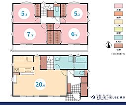 間取り内訳:リビングダイニングキッチン 19.4帖(1階)・洋室 4.7帖(2階)・洋室 5帖・洋室 5.3帖(2階)・洋室 6.1帖(2階)