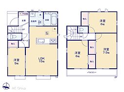 | 間取り | 3LDK 間取り内訳:洋室 9.5帖(2階)・洋室 8帖(2階)・洋室 5.2帖(2階)・リビングダイニングキッチン 21帖(1階) |