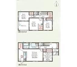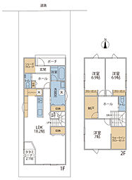 間取り内訳:リビングダイニングキッチン 17.5帖(1階)・和室 4.5畳(1階)・洋室 7.5帖(2階)・洋室 5.2帖(2階)・洋室 5.2帖(2階)