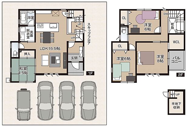 • 【基礎内収納】リビングに面したスキップフロアの下には、半地下の収納スペースがあります(画像はイメージ)。