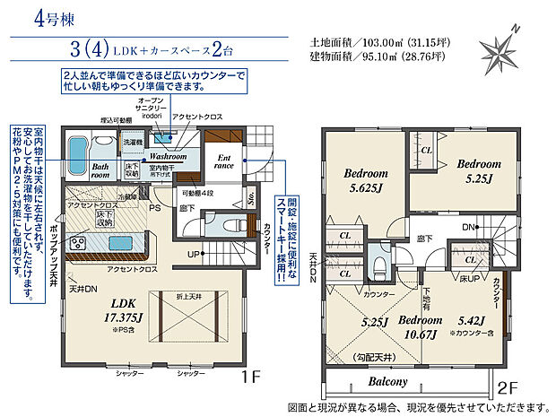 95.10m2(約28.76坪)~97.50m2(約29.49坪) |