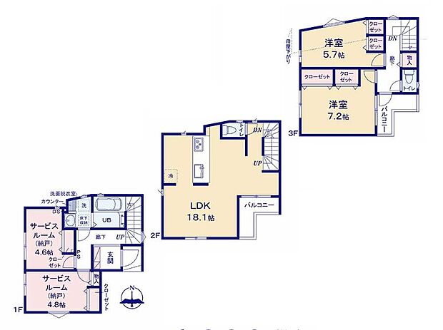 間取り 2LDK+2S~4LDK 建物階 木造3階建