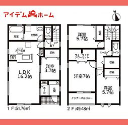 | 間取り | 5LDK 間取り内訳:リビングダイニングキッチン 18.7帖(1階)・洋室 3.7帖(1階)・洋室 6.7帖(2階)・洋室 5帖(2階)・洋室 5帖(2階)・洋室 4.5帖(2階) |
