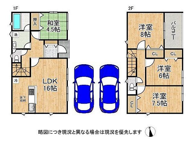 | 間取り | 4LDKLDK16帖 駐車2台 インナーバルコニー 2面採光 全居室収納スペース 廊下収納 |
