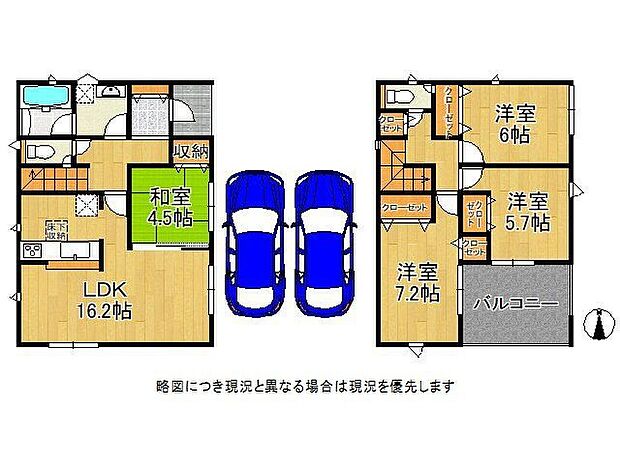 | 間取り | 4LDKLDK16帖 駐車2台 インナーバルコニー 2面採光 全居室収納スペース 廊下収納 |