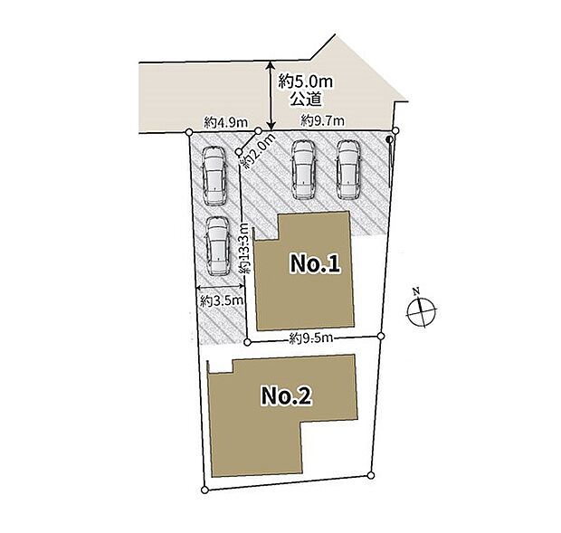 2号棟:北5m /1号棟:北5m