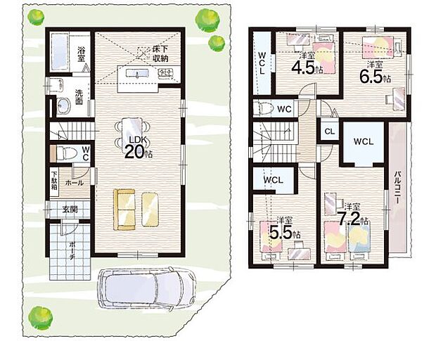 • 「建築条件付き土地」の「建物プラン例」は、土地購入者の設計プランの一例であり、プランの採用可否は任意です。
