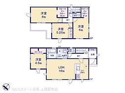 間取り内訳:リビングダイニングキッチン 16帖(1階)・洋室 4.5帖(1階)・洋室 8帖(2階)・洋室 6帖(2階)・洋室 5.2帖(2階)