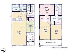 | 間取り | 2SLDK 間取り内訳:リビングダイニングキッチン 18帖(1階)・洋室 7.5帖(2階)・洋室 6帖(2階)・収納 6帖(2階) |
