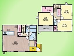 | 間取り | 3LDK 間取り内訳:リビングダイニングキッチン 12.6帖(1階)・洋室 4.5帖(2階)・洋室 6.7帖(2階)・洋室 6.7帖(2階) |
