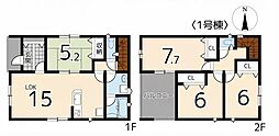 | 間取り | 3LDK 間取り内訳:リビングダイニングキッチン 18帖(1階)・洋室 6帖(2階)x3 |