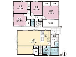 | 間取り | 4LDK 間取り内訳:リビングダイニングキッチン 19.2帖(1階)・洋室 4.8帖(2階)x2・洋室 6帖(2階)・洋室 6.6帖(2階) |