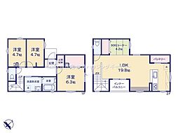 | 間取り | 4LDK 間取り内訳:洋室 7.3帖(2階)・洋室 5.6帖(2階)・洋室 5.5帖(2階)・洋室 4.5帖(1階)・リビングダイニングキッチン 15.7帖(1階) |