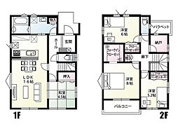 | 間取り | 4LDK 間取り内訳:リビングダイニングキッチン 17.6帖(1階)・和室 4.5畳(1階)・洋室 8帖(2階)・洋室 5.2帖(2階)x2 |