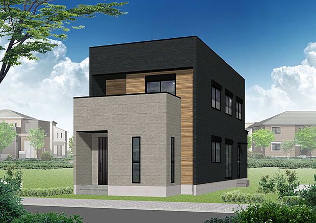 ブラック×グレーのシックな落ち着いた外観。ゆったりとくつろげる広々20帖のLDK、プライバシー空間に配慮した分離型の洗面室・脱衣室などを取り入れた注文住宅仕様の住まいです♪