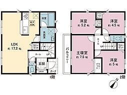 間取り内訳:リビングダイニングキッチン 16帖(1階)・洋室 4.5帖(1階)・洋室 7.2帖(2階)・洋室 6帖(2階)・洋室 5.2帖(2階)