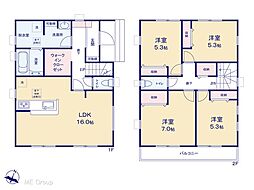 | 間取り | 4LDK 間取り内訳:リビングダイニングキッチン 16帖(1階)・洋室 4帖(1階)・洋室 7.3帖(2階)・洋室 6帖(2階)x2 |