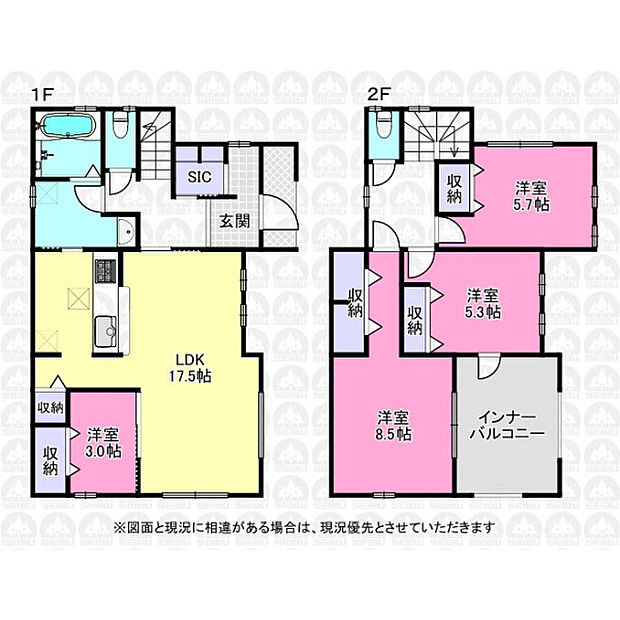 全5棟/角地/敷地面積62坪/SIC有/南道路の為陽当たり・風通し良好/インナーバルコニー有