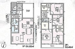 間取り内訳:リビングダイニングキッチン 16.1帖(1階)・洋室 6.6帖(2階)・洋室 6帖(2階)・洋室 4.5帖(2階)