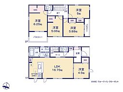 | 間取り | 5LDK 間取り内訳:リビングダイニングキッチン 16.7帖(1階)・洋室 4.5帖(1階)・洋室 6.2帖(2階)・洋室 5.8帖(2階)・洋室 5帖(2階)・洋室 5帖(2階) |