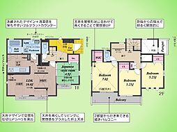 - 「建築条件付き土地」の「建物プラン例」は、土地購入者の設計プランの一例であり、プランの採用可否は任意です。