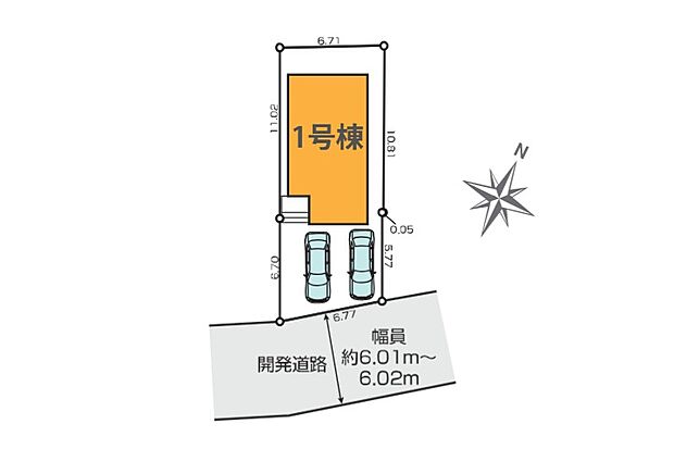 南東6m道路接道につき開放感良好・カースペース並列2台可